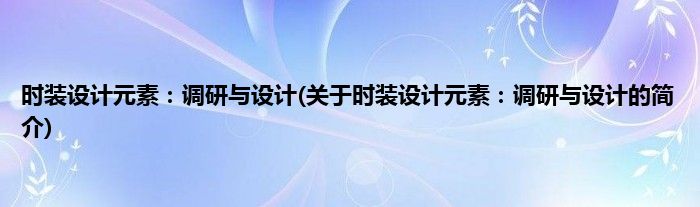 本文关于时装设计元素:调研与设计的简介就讲解完毕,希望对大家有所帮助。