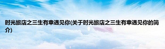 本文关于时光旅店之三生有幸遇见你的简介就讲解完毕,希望对大家有所帮助。