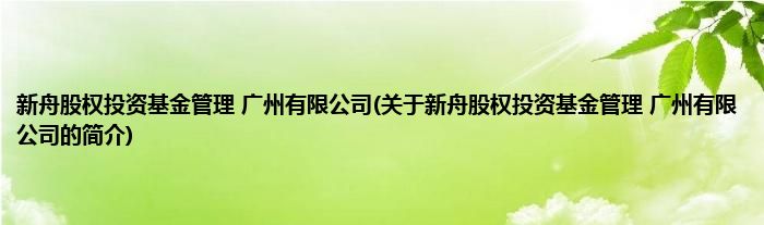 新舟股权投资基金管理 广州有限公司(关于新舟股权投资基金管理 广州有限公司的简介)