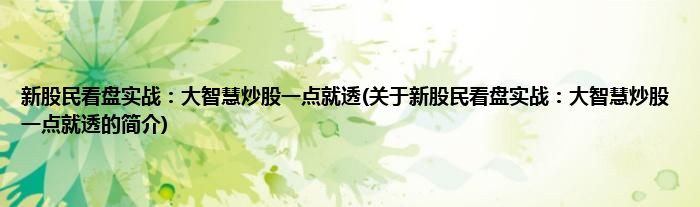 新股民看盘实战:大智慧炒股一点就透(关于新股民看盘实战:大智慧炒股一点就透的简介)
