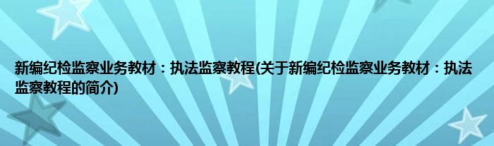 本文关于新编纪检监察业务教材:执法监察教程的简介就讲解完毕,希望对大家有所帮助。