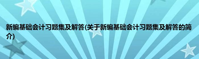 大家好,新编基础会计习题集及解答,关于新编基础会计习题集及解答的简介很多人还不知道,现在让我们一起来看看吧!
