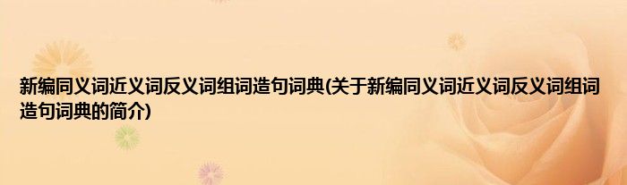 本文关于新编同义词近义词反义词组词造句词典的简介就讲解完毕,希望对大家有所帮助。