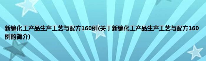 本文关于新编化工产品生产工艺与配方160例的简介就讲解完毕,希望对大家有所帮助。