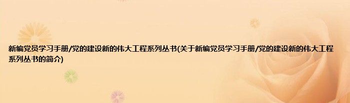 本文关于新编党员学习手册/党的建设新的伟大工程系列丛书的简介就讲解完毕,希望对大家有所帮助。