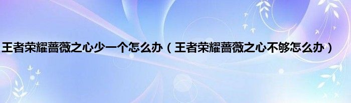 大家好,精选小编来为大家解答以上问题。王者荣耀蔷薇之心少一个怎么办,王者荣耀蔷薇之心不够怎么办很多人还不知道,现在让我们一起来看看吧!