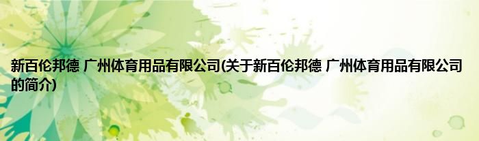 本文关于新百伦邦德 广州体育用品有限公司的简介就讲解完毕,希望对大家有所帮助。