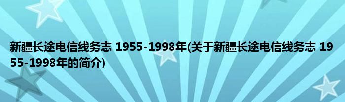 本文关于新疆长途电信线务志 1955-1998年的简介就讲解完毕,希望对大家有所帮助。