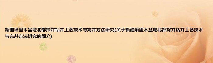 本文关于新疆塔里木盆地北部探井钻井工艺技术与完井方法研究的简介就讲解完毕,希望对大家有所帮助。