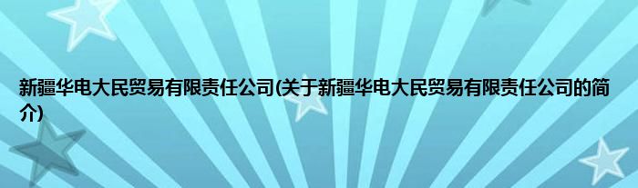 本文关于新疆华电大民贸易有限责任公司的简介就讲解完毕,希望对大家有所帮助。