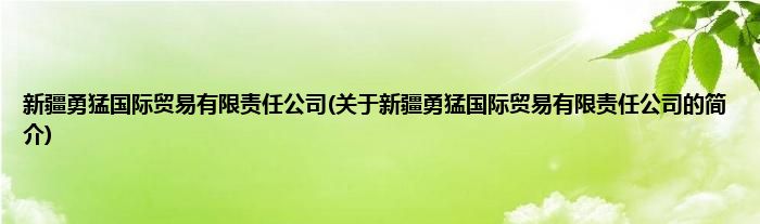 本文关于新疆勇猛国际贸易有限责任公司的简介就讲解完毕,希望对大家有所帮助。