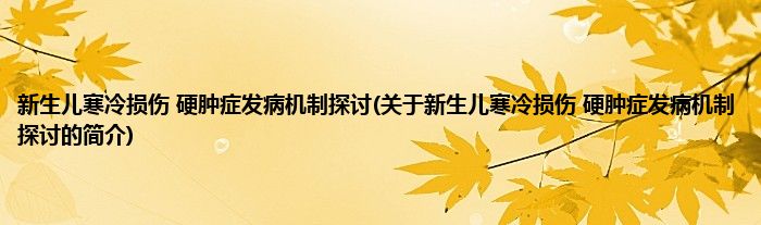 大家好,新生儿寒冷损伤 硬肿症发病机制探讨,关于新生儿寒冷损伤 硬肿症发病机制探讨的简介很多人还不知道,现在让我们一起来看看吧!