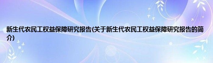 本文关于新生代农民工权益保障研究报告的简介就讲解完毕,希望对大家有所帮助。
