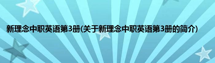 本文关于新理念中职英语第3册的简介就讲解完毕,希望对大家有所帮助。