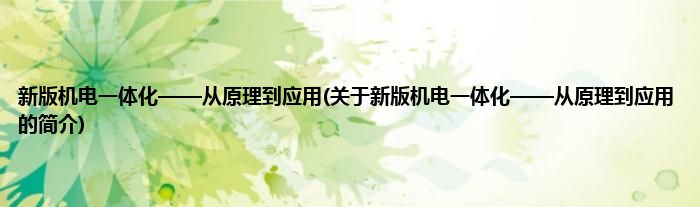 本文关于新版机电一体化——从原理到应用的简介就讲解完毕,希望对大家有所帮助。