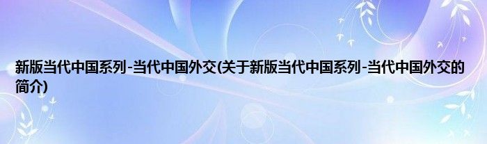 本文关于新版当代中国系列-当代中国外交的简介就讲解完毕,希望对大家有所帮助。