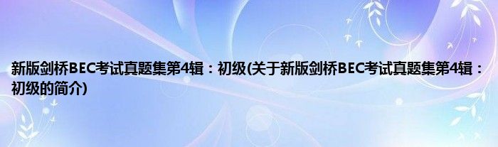 大家好,新版剑桥BEC考试真题集第4辑:初级,关于新版剑桥BEC考试真题集第4辑:初级的简介很多人还不知道,现在让我们一起来看看吧!