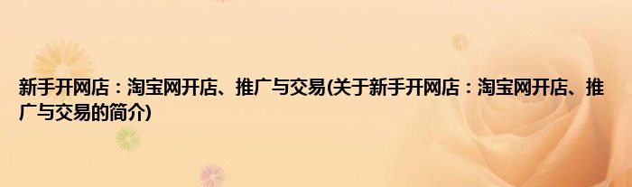 本文关于新手开网店:淘宝网开店、推广与交易的简介就讲解完毕,希望对大家有所帮助。