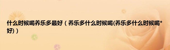 大家好,小科来为大家解答以上问题。什么时候喝养乐多最好,养乐多什么时候喝(养乐多什么时候喝*好)很多人还不知道,现在让我们一起来看看吧!