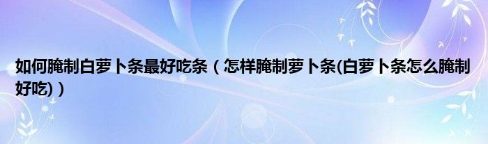 大家好,小科来为大家解答以上问题。如何腌制白萝卜条最好吃条,怎样腌制萝卜条(白萝卜条怎么腌制好吃)很多人还不知道,现在让我们一起来看看吧!