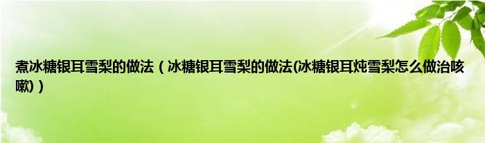 大家好,小科来为大家解答以上问题。煮冰糖银耳雪梨的做法,冰糖银耳雪梨的做法(冰糖银耳炖雪梨怎么做治咳嗽)很多人还不知道,现在让我们一起来看看吧!