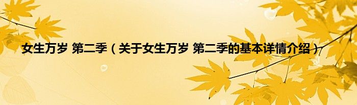 本文关于女生万岁 第二季的基本详情介绍就讲解完毕,希望对大家有所帮助。