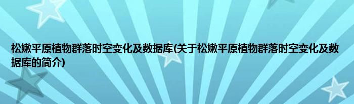 松嫩平原植物群落时空变化及数据库(关于松嫩平原植物群落时空变化及数据库的简介)