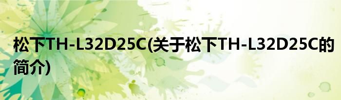 本文关于松下TH-L32D25C的简介就讲解完毕,希望对大家有所帮助。