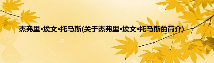 大家好,杰弗里·埃文·托马斯,关于杰弗里·埃文·托马斯的简介很多人还不知道,现在让我们一起来看看吧!