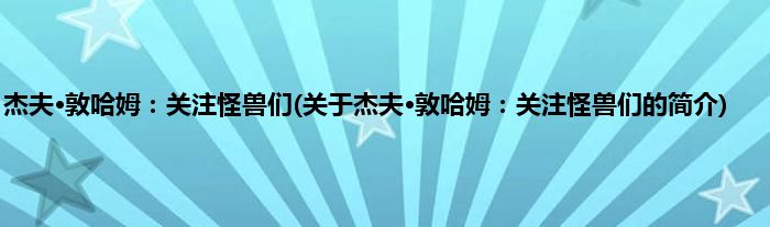 大家好,杰夫·敦哈姆:关注怪兽们,关于杰夫·敦哈姆:关注怪兽们的简介很多人还不知道,现在让我们一起来看看吧!
