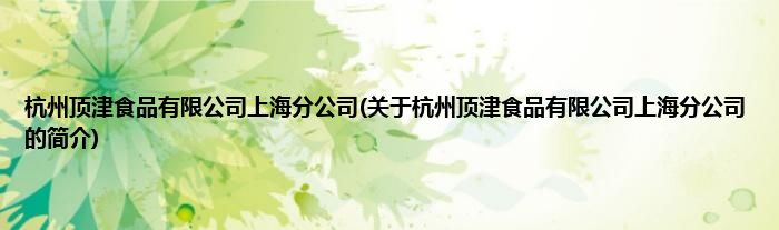 大家好,杭州顶津食品有限公司上海分公司,关于杭州顶津食品有限公司上海分公司的简介很多人还不知道,现在让我们一起来看看吧!