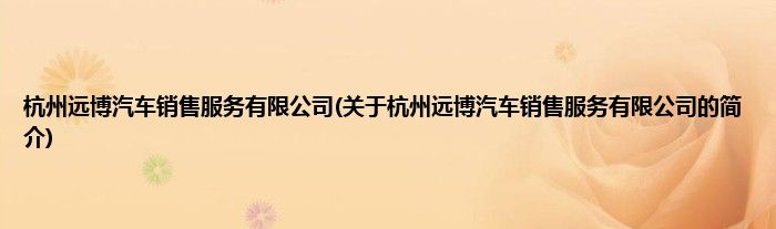 本文关于杭州远博汽车销售服务有限公司的简介就讲解完毕,希望对大家有所帮助。