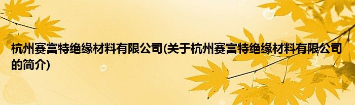 本文关于杭州赛富特绝缘材料有限公司的简介就讲解完毕,希望对大家有所帮助。