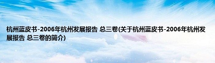 1、 《杭州蓝皮书-2006年杭州发展报告(总三卷)》是2006年1月1日由杭州出版社出版的图书。