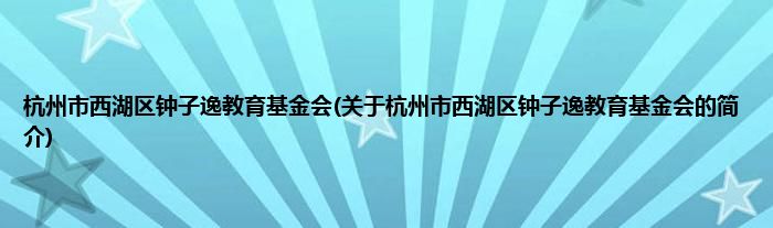 本文关于杭州市西湖区钟子逸教育基金会的简介就讲解完毕,希望对大家有所帮助。