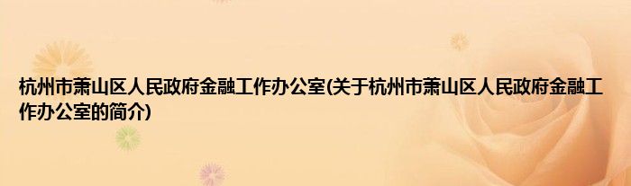 本文关于杭州市萧山区人民政府金融工作办公室的简介就讲解完毕,希望对大家有所帮助。
