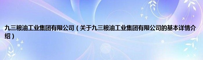 本文关于九三粮油工业集团有限公司的基本详情介绍就讲解完毕,希望对大家有所帮助。