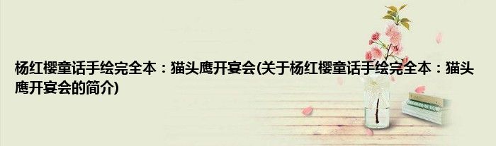 本文关于杨红樱童话手绘完全本:猫头鹰开宴会的简介就讲解完毕,希望对大家有所帮助。