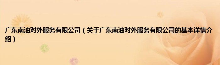 本文关于广东南油对外服务有限公司的基本详情介绍就讲解完毕,希望对大家有所帮助。