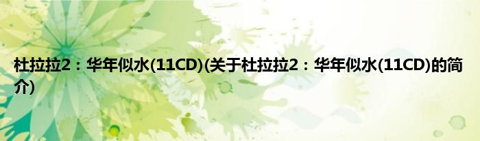 本文关于杜拉拉2:华年似水(11CD)的简介就讲解完毕,希望对大家有所帮助。