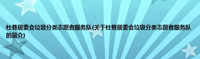 大家好,杜巷居委会垃圾分类志愿者服务队,关于杜巷居委会垃圾分类志愿者服务队的简介很多人还不知道,现在让我们一起来看看吧!