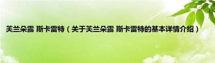 本文关于芙兰朵露 斯卡雷特的基本详情介绍就讲解完毕,希望对大家有所帮助。