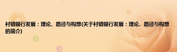 本文关于村镇银行发展:理论、路径与构想的简介就讲解完毕,希望对大家有所帮助。