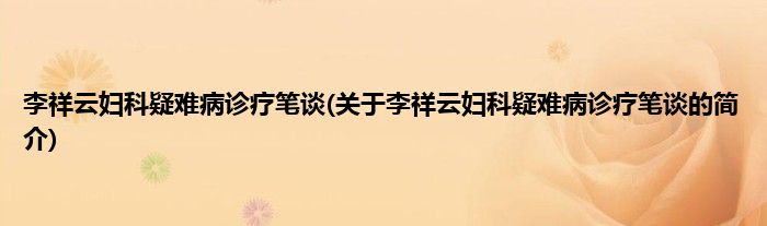 本文关于李祥云妇科疑难病诊疗笔谈的简介就讲解完毕,希望对大家有所帮助。