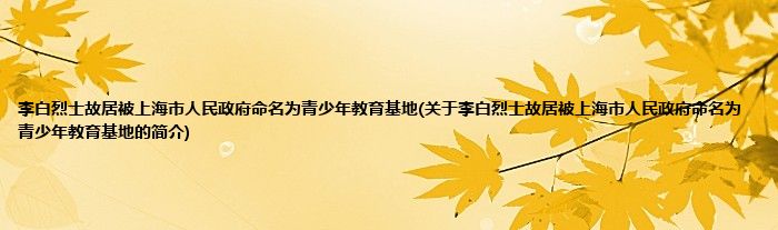 本文关于李白烈士故居被上海市人民政府命名为青少年教育基地的简介就讲解完毕,希望对大家有所帮助。