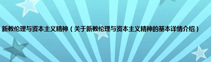 本文关于新教伦理与资本主义精神的基本详情介绍就讲解完毕,希望对大家有所帮助。