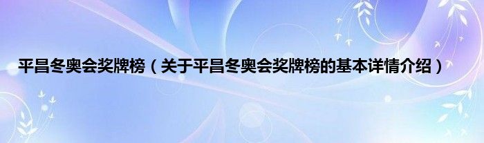 本文关于平昌冬奥会奖牌榜的基本详情介绍就讲解完毕,希望对大家有所帮助。