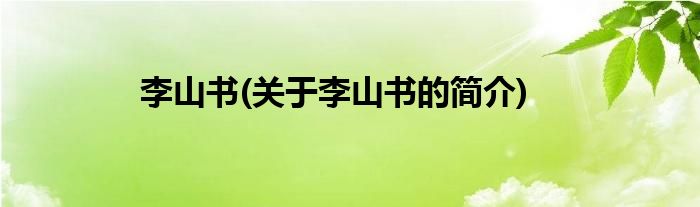 大家好,李山书,关于李山书的简介很多人还不知道,现在让我们一起来看看吧!