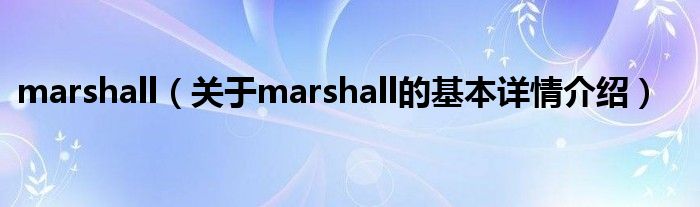本文关于marshall的基本详情介绍就讲解完毕,希望对大家有所帮助。