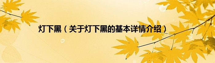 本文关于灯下黑的基本详情介绍就讲解完毕,希望对大家有所帮助。